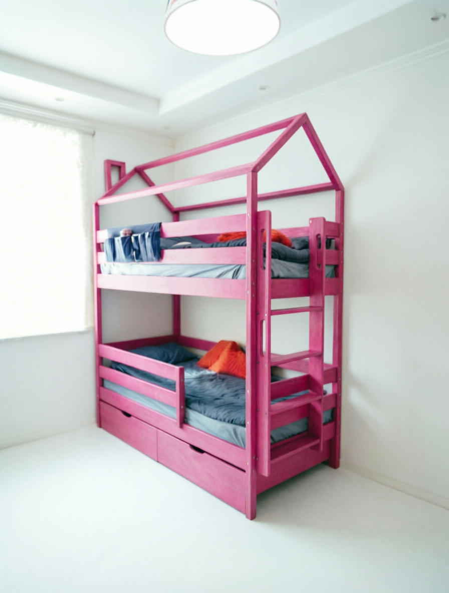 Кровать детская двухъярусная Домик - служит отличным местом отдыха ваших деток и прекрасным дополнением вашего интерьера. Кровать изготовлена из массива сосны.